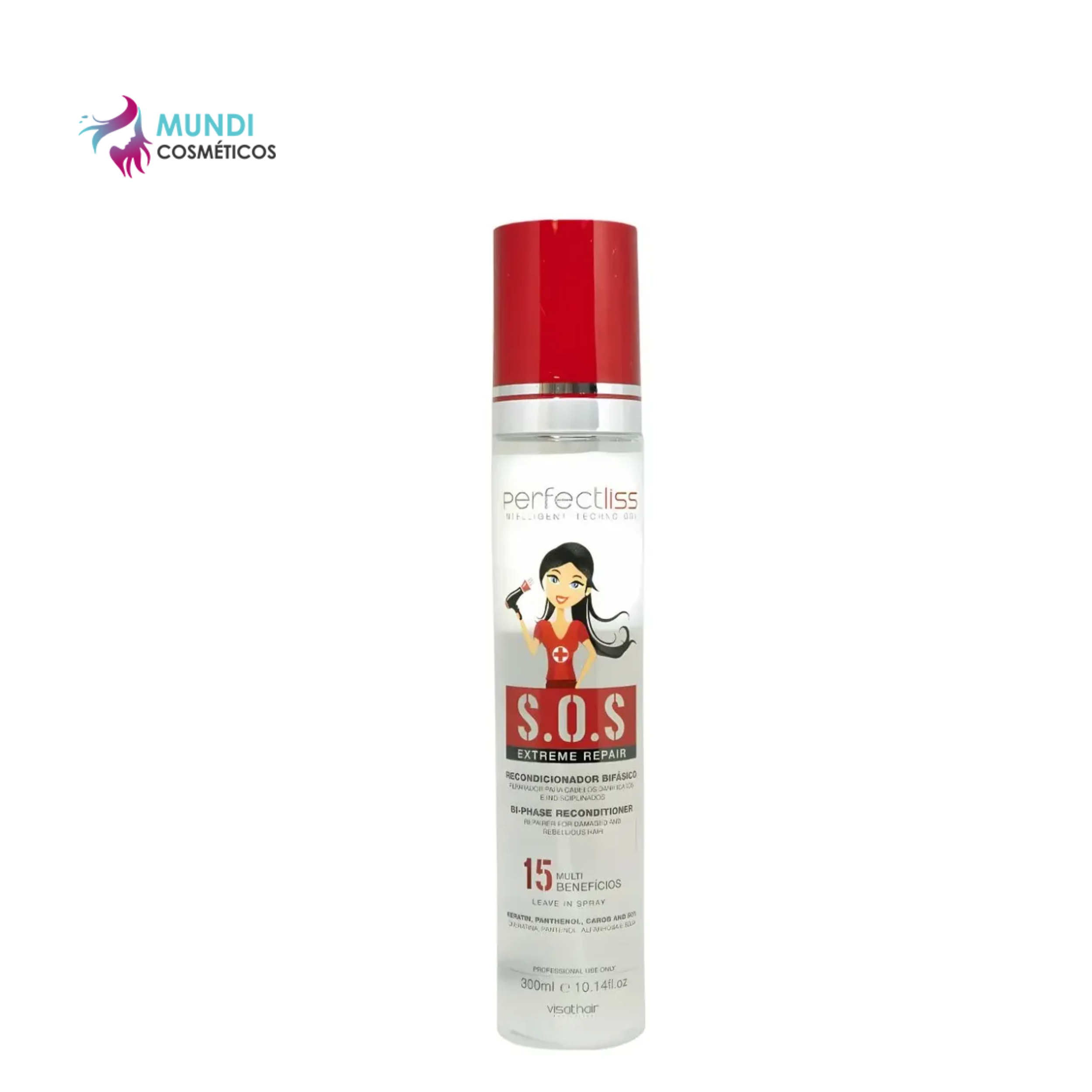 Recondicionador Bifásico S.O.S. Extreme Repair Perfect Liss - Reparador para cabelos danificados e indisciplinados é asolução inovadora para o cuidado de todos os tipos de cabelos. Restaura os cabelos secos e enfraquecidos, fortalece a barreira protetora do cabelo, tem nutrição instantânea e aumenta a resistência, força e elasticidade do fio. Oferece 15 Multibenefícios por combinar um blend de ativos nobres como Queratina, Pantenol, Alfarroba e Soja.